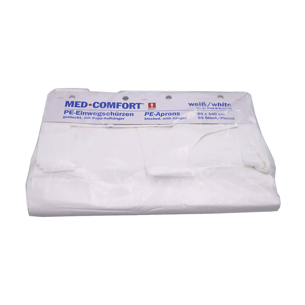 Disposable aprons, white, smooth surface, 80 x 140cm, polyethylene, Med-Comfort