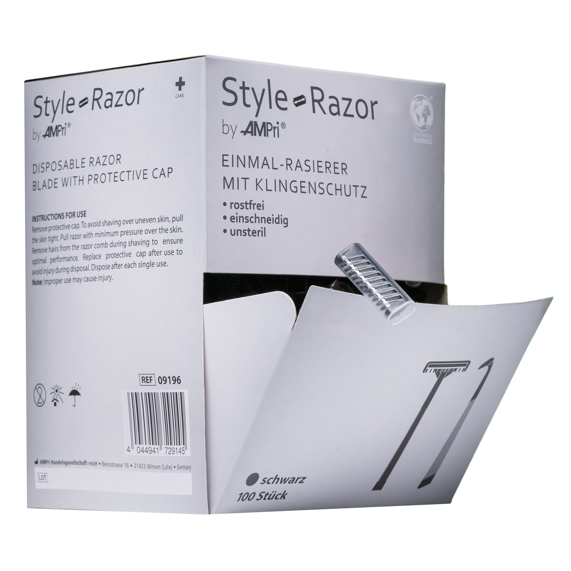 Einweg Rasierer mit Edelstahl Klinge, 1-schneidig, Farbe Schwarz, 100 Stück