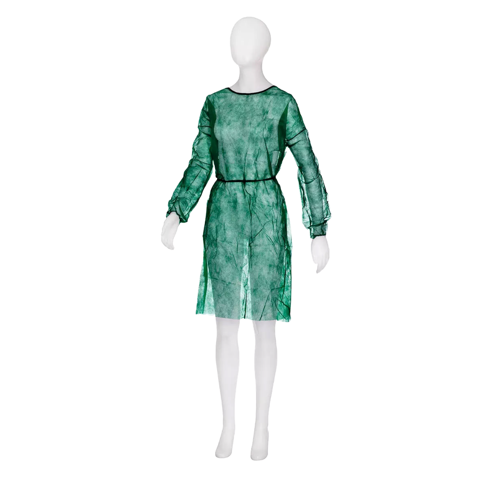 The green visitor gown made of non-woven materials in a lovely shade of dark green (size M/L) are ideal if you regularly need to provide dependable, comfortable and practical protective clothing to visitors, customers and others.